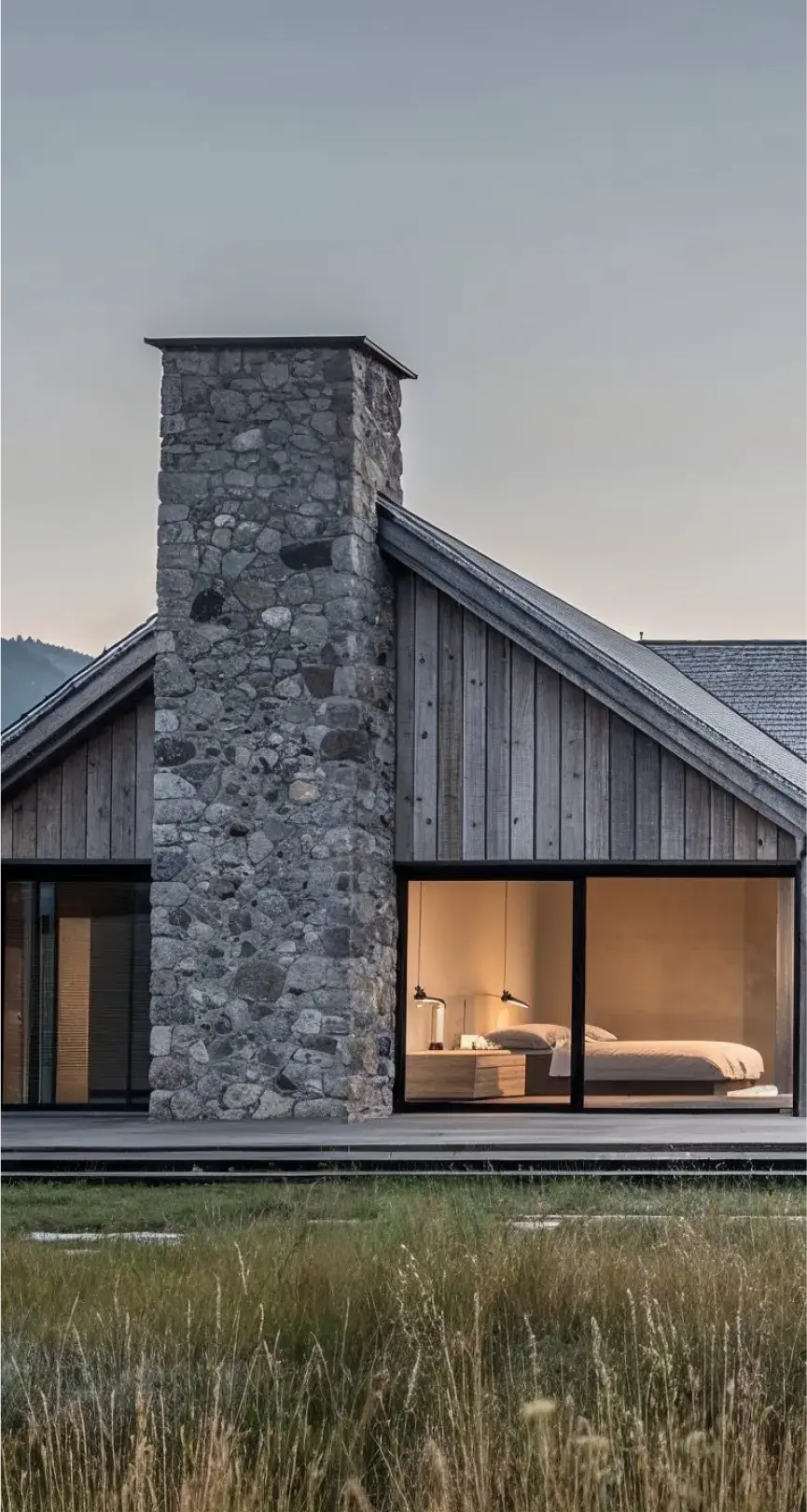 The hallmark of "Bunker Hill" is its breathtaking cantilevered terrace, a feat of architectural ingenuity that extends outward, providing an awe-inspiring vantage point to soak in the surrounding beauty. The design harmoniously incorporates natural materials, capturing the essence of the mountain environment. Large windows frame vistas of the lake, allowing natural light to flood the interiors and create a sense of openness.